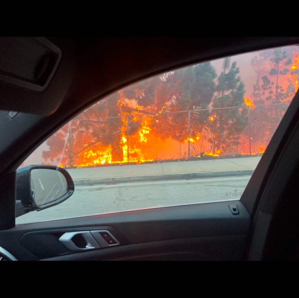 “8:15pm—Marilou, Trixie & I arrive at Chelsea’s house in Hollywood,” he said. “Most horrific fire since ’93, STAY SAFE!”