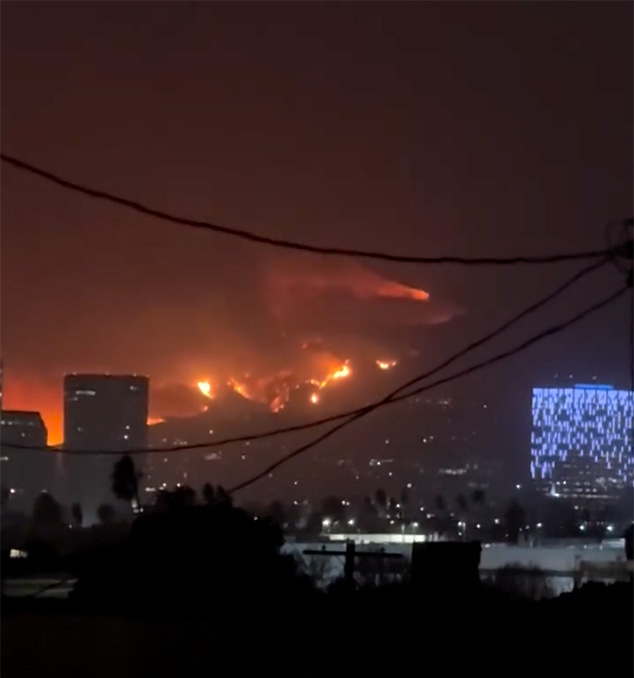 From his home, the Frozen actor posted the heartbreaking sight of flames sweeping over Los Angeles in the distance.